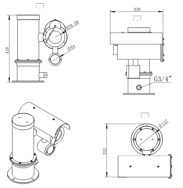 首页 / 产品中心 / 防爆网络摄像机 / 防爆云台摄像机 / 500万 / BL-EX9523IAW 500万23倍超星光红外单舱雨刷防爆云台摄像机